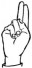 На ћирилици написано КОСТАДИН КРУЉ састоји се из 12 слова [?]. Исписано ћириличном једноручном азбуком за глувонеме: